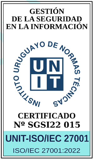 Con fecha 02.07.13, nos ha sido otorgado por UNIT, el “Certificado UNIT de Sistema de Gestión de la Seguridad de la Información” conforme a la norma UNIT-ISO/IEC 27001:2013, con fecha 18.12.19, nos ha sido otorgado por UNIT, el “Certificado UNIT de Sistema de Gestión de la Energía” conforme a la norma UNIT-ISO 50001:2018.". Asimismo con fecha 20.12.22, nos ha sido otorgado por UNIT, el “Certificado UNIT de Sistema de Gestión de la Seguridad Vial", conforme a la norma UNIT-ISO 39001:2012.